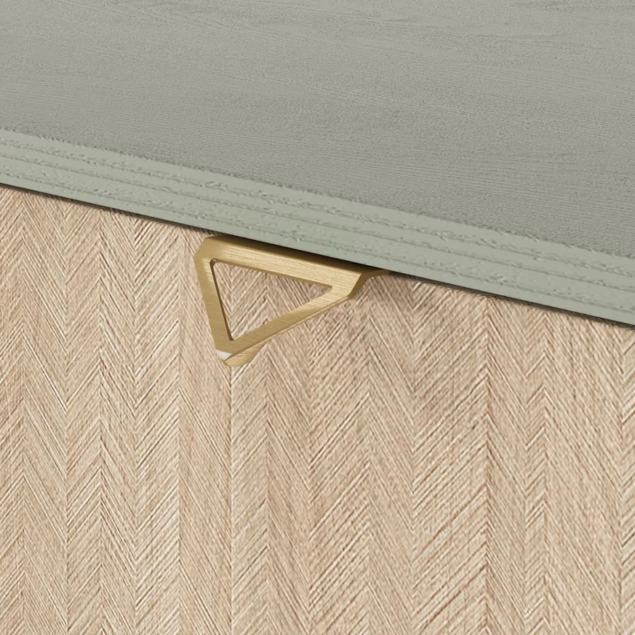Komoda FLOSSY w eukaliptusowym odcieniu z złotymi uchwytami i wzorem jodełki to stylowy i funkcjonalny mebel, który doda wnętrzu wyjątkowego charakteru.