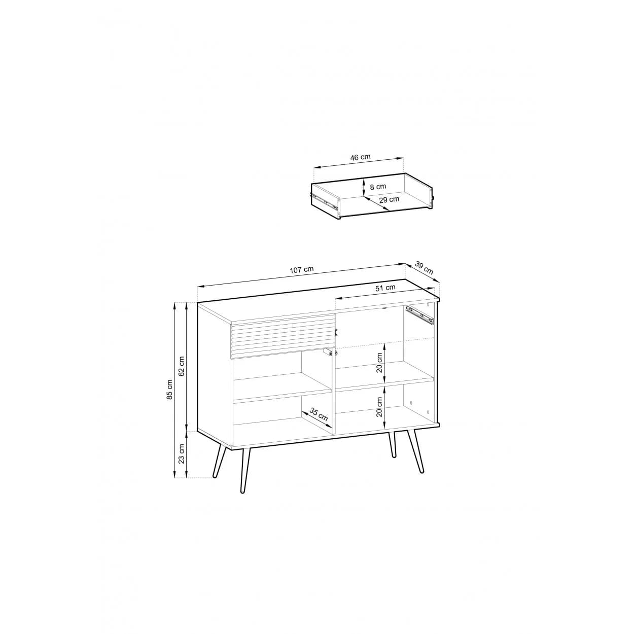 Komoda Mavi z szufladami to elegancki mebel w nowoczesnym stylu glamour. Ryflowany front, złote akcenty i minimalistyczna forma sprawiają, że będzie ozdobą każdego wnętrza.