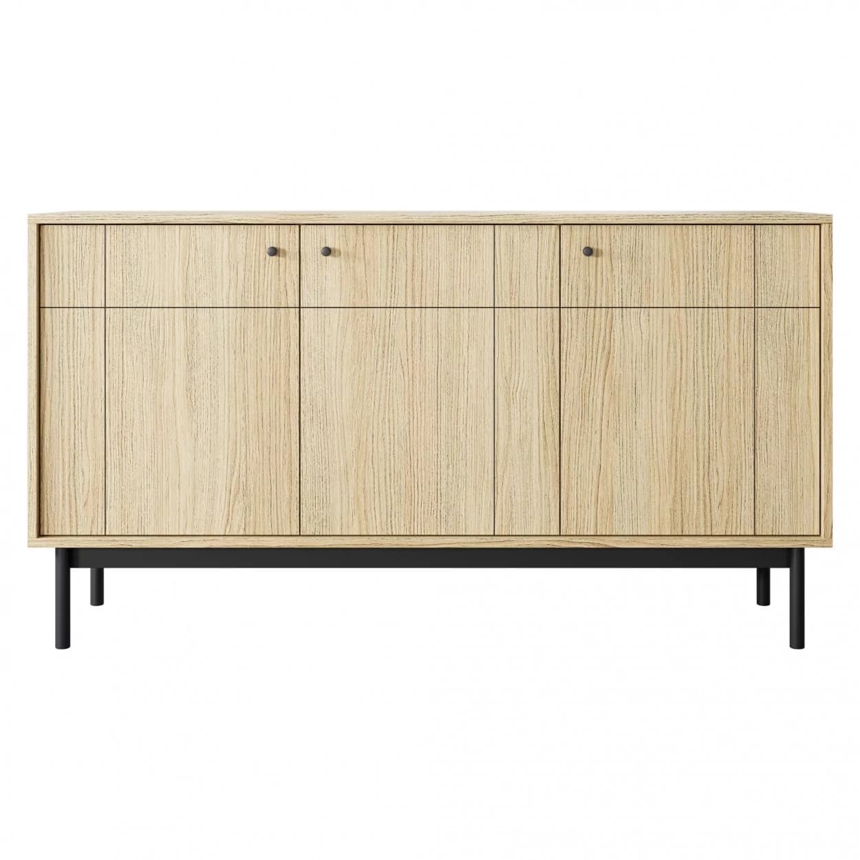 Komoda FRAME w kolorze Dąb Linea łączy stylowy wygląd z funkcjonalnością. Czarne uchwyty i frezowany front dodają jej nowoczesnego charakteru.
