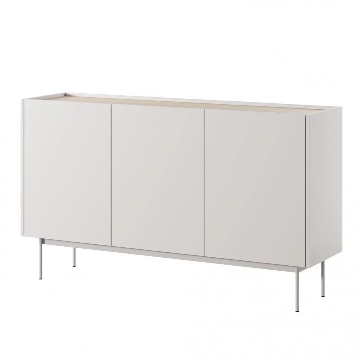 Komoda Lumia łączy bezuchwytowe otwieranie, metalowe nóżki i kolor Kaszmir z Dębem Linea. Pojemne wnętrze i ciche zawiasy zapewniają wygodę użytkowania, a nowoczesny design sprawdzi się w każdym wnętrzu.