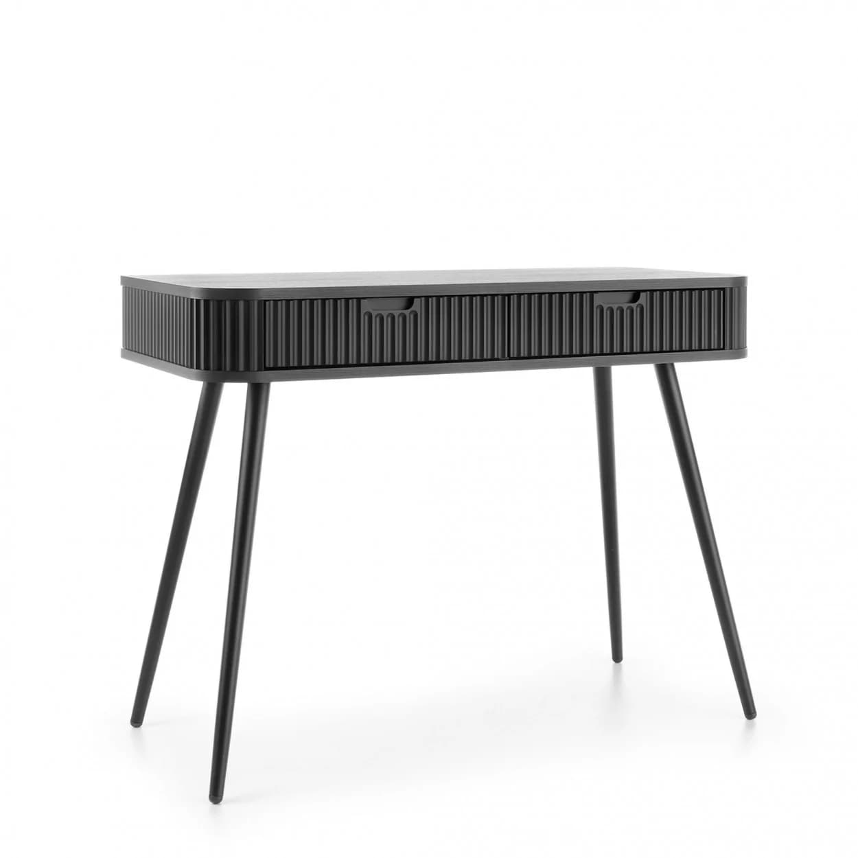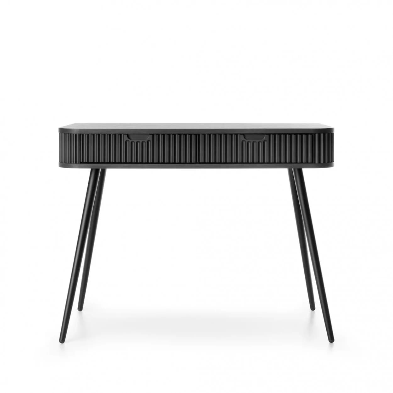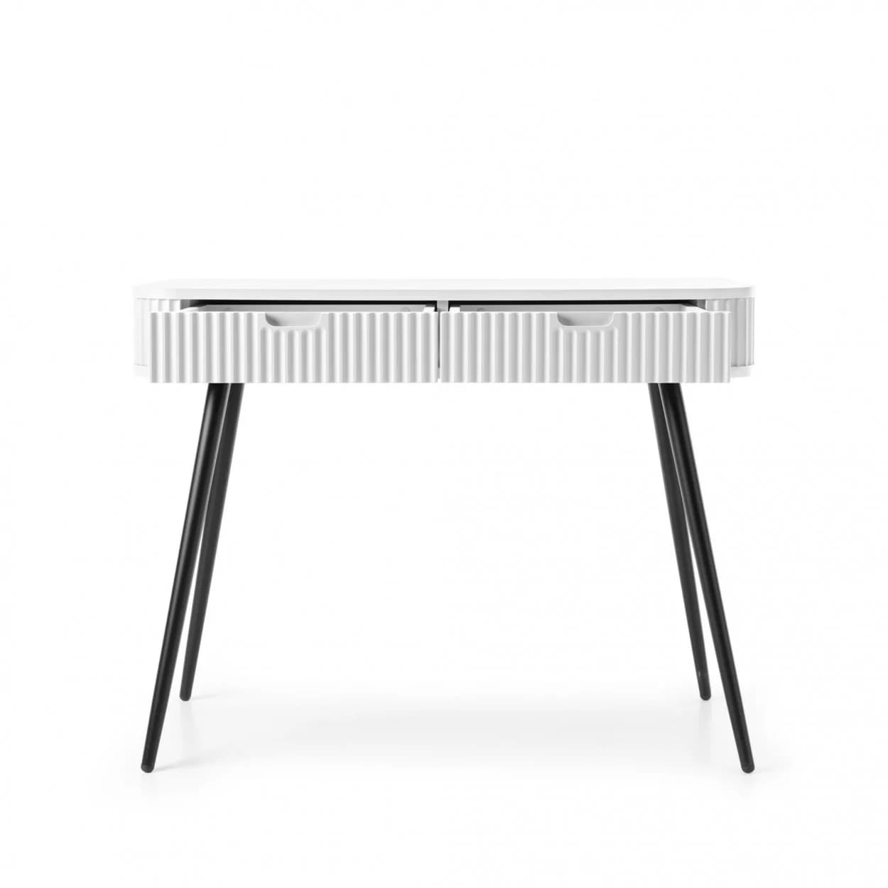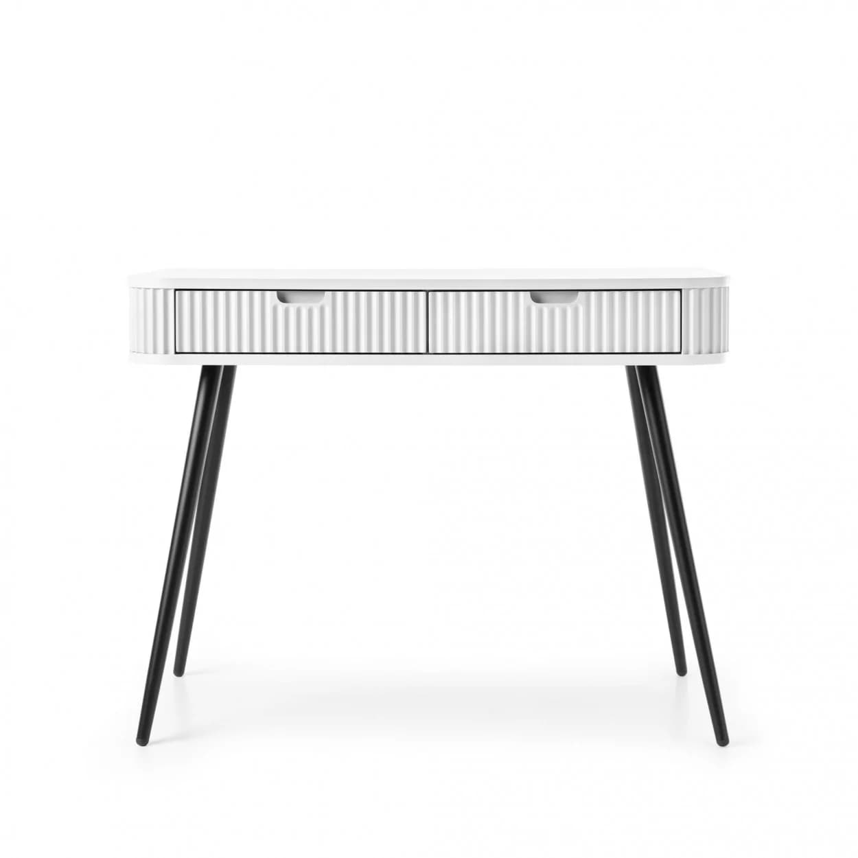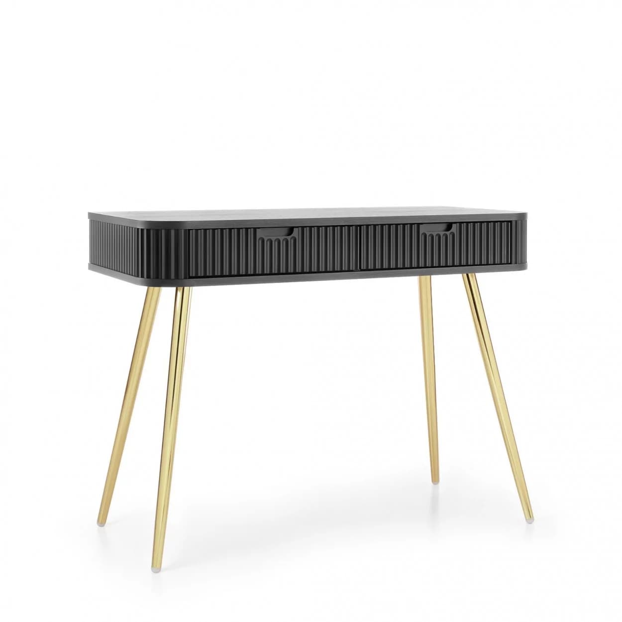 Konsola ZOYA z ryflowanym frontem i zaokrąglonymi bokami to połączenie nowoczesnego stylu i praktyczności. Dostępna w trzech kolorach, z nóżkami w złotym lub czarnym wykończeniu.