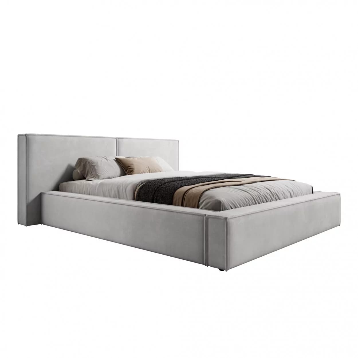 Model wyróżnia się wysoką jakością wykonania oraz dbałością o detale, widoczną m.in. w estetycznych wykończeniach boków i zagłówka. Wbudowany dwukomorowy pojemnik na pościel otwierany za pomocą automatu sprężynowego sprawia, że łóżko jest nie tylko piękne, ale i wyjątkowo funkcjonalne.