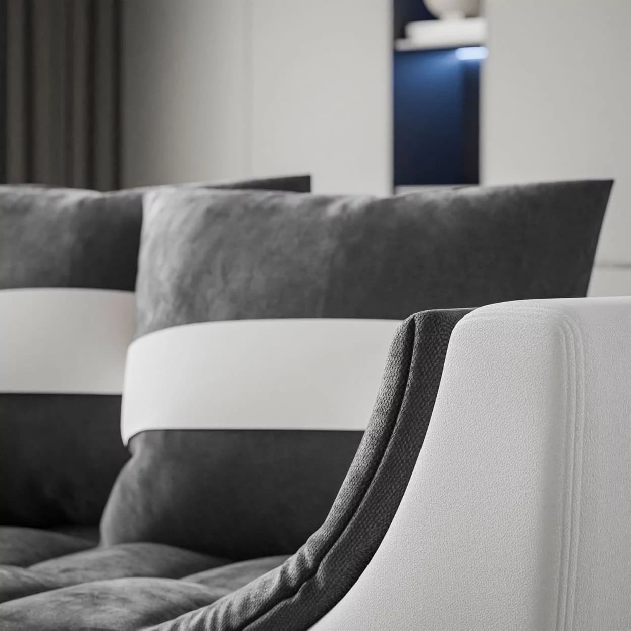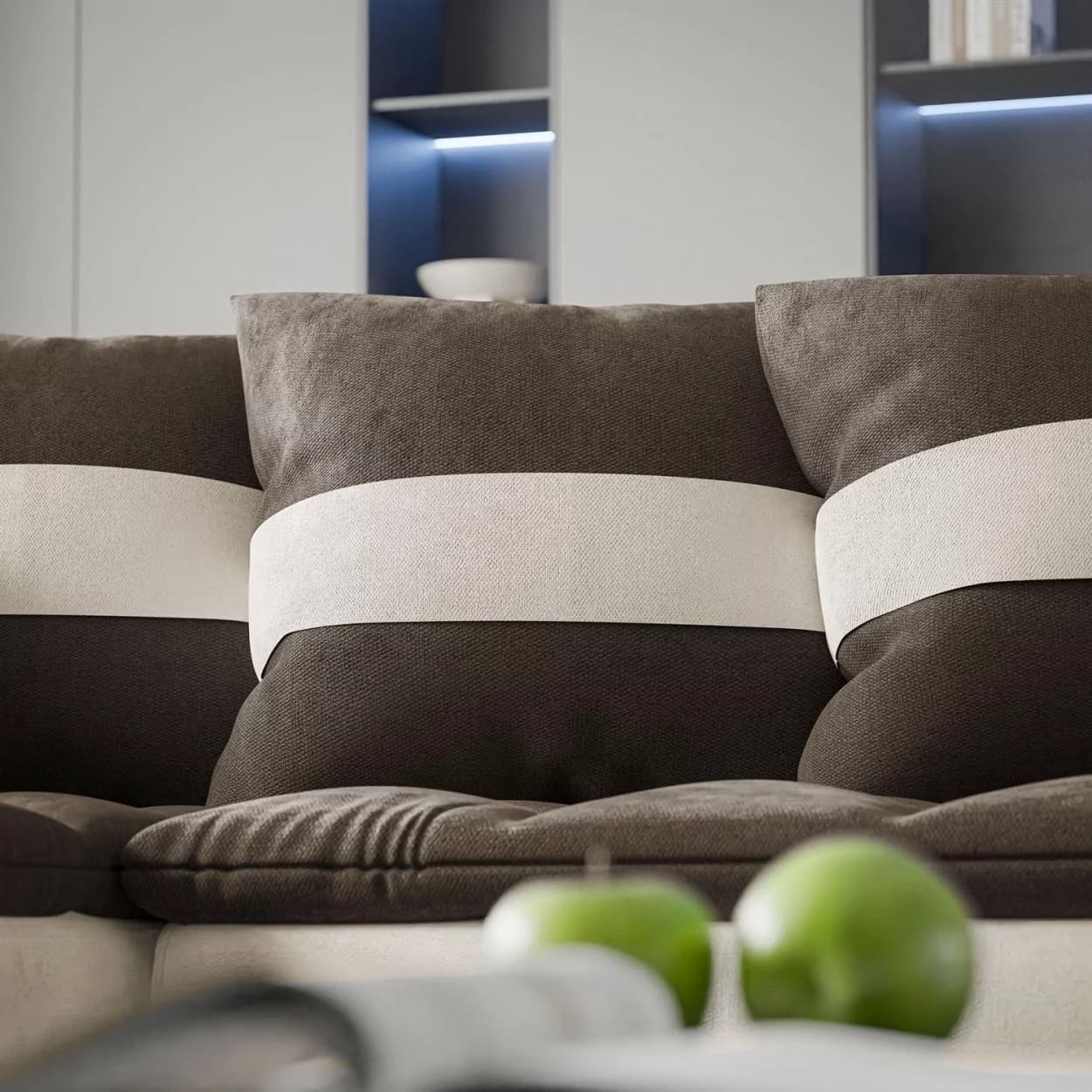 na prezentowanych zdjęciach kanapa jest wykonana w tkaninach: Eureka 2127 + Jasmine 20, Rosario 456 + Jasmine 20, Rosario 451 + Rosario 462.