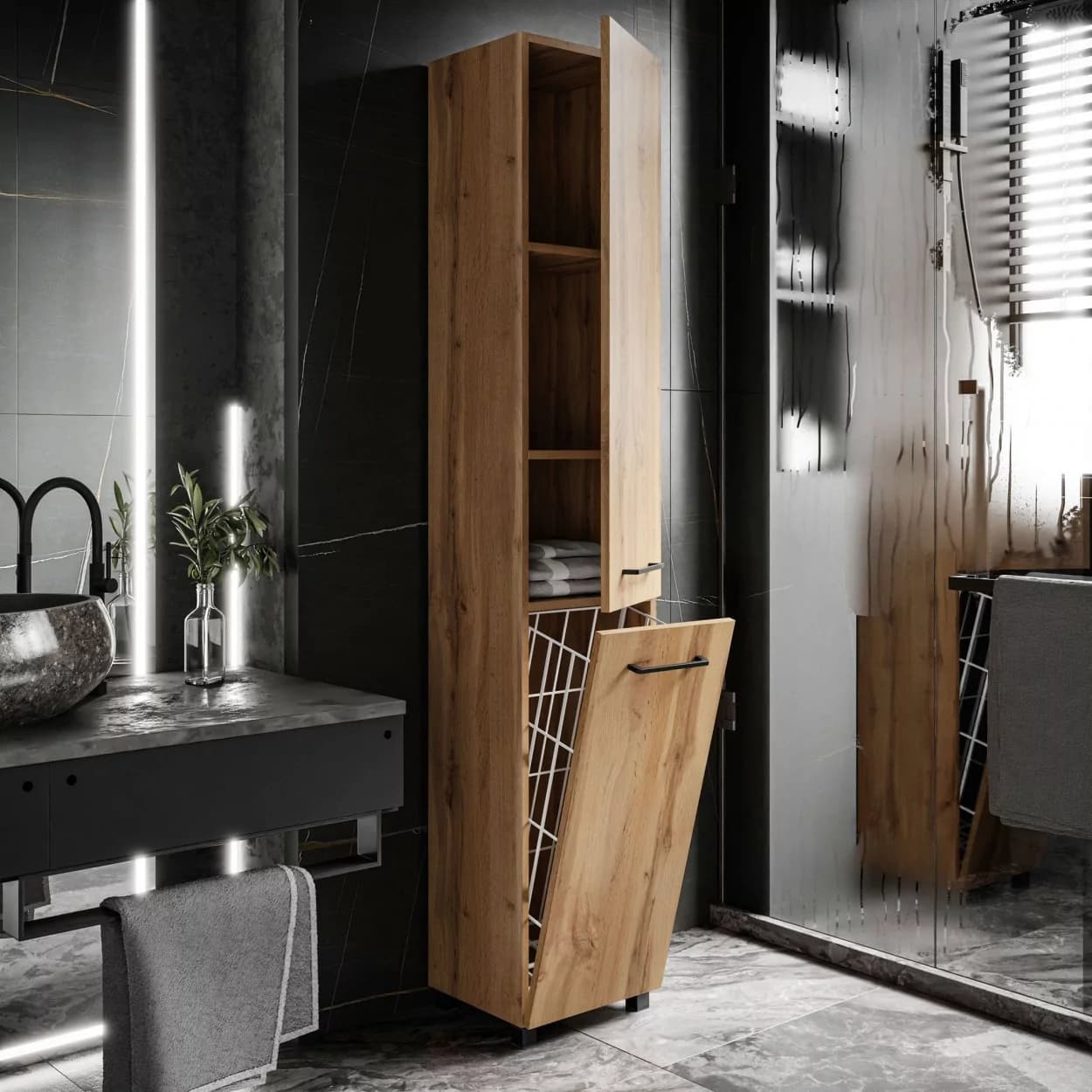 Zapewnij sobie elegancję i funkcjonalność dzięki Słupkowi Łazienkowemu NIRVANA w kolorze dąb wotan! Ten wyjątkowy mebel nie tylko ułatwia organizację przestrzeni, ale także dodaje charakteru dzięki solidnemu wykonaniu i przemyślanemu designowi. Idealnie wpisuje się w każdy nowoczesny czy klasyczny wystrój łazienki, oferując zarówno estetykę, jak i praktyczność na najwyższym poziomie.