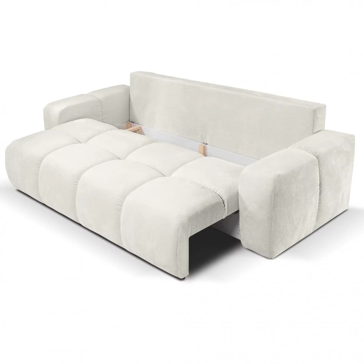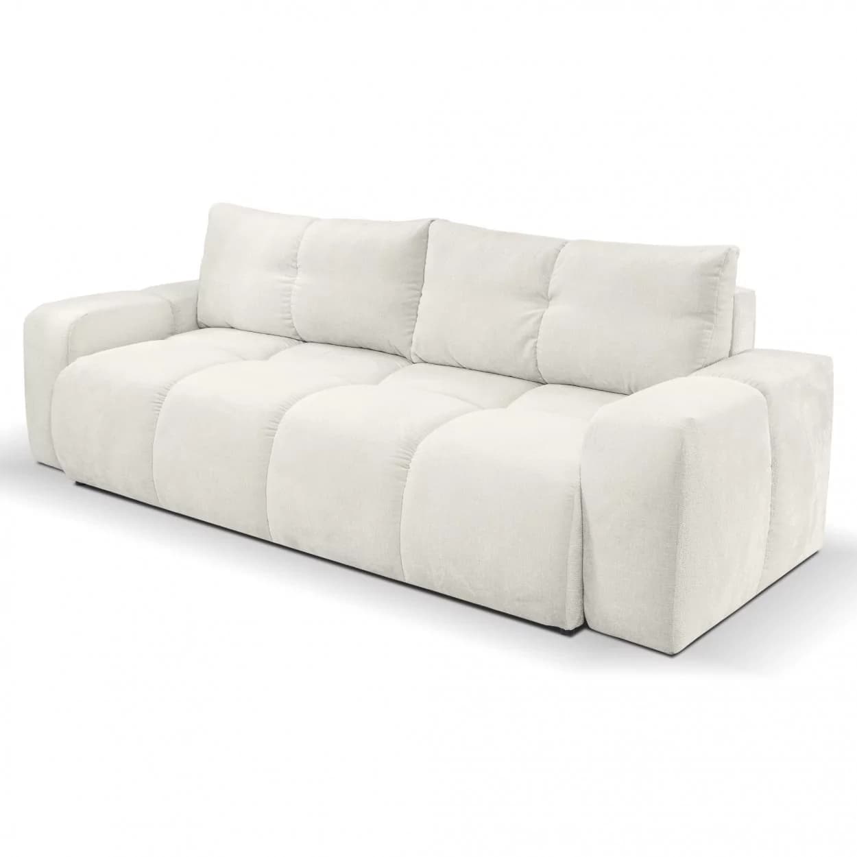 Kanapa SELLA to połączenie eleganckiego stylu glamour i praktycznych funkcji. Funkcja spania, pojemnik na pościel oraz obłe kształty i dekoracyjne przeszycia czynią ją zarówno komfortową, jak i efektowną ozdobą wnętrza.