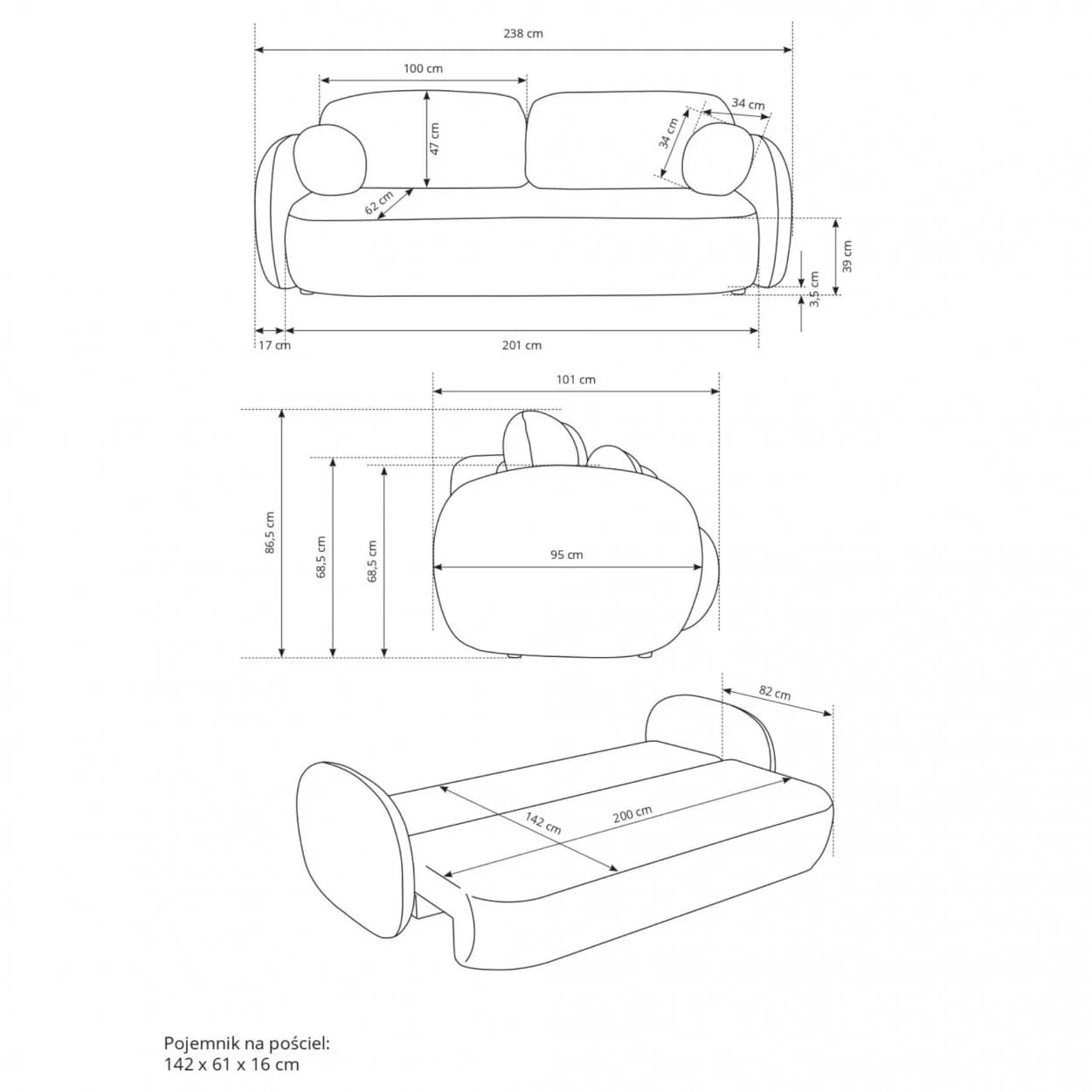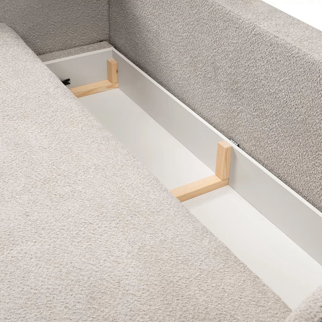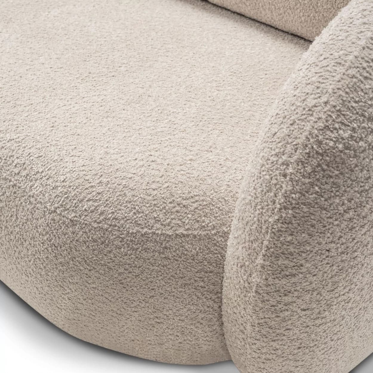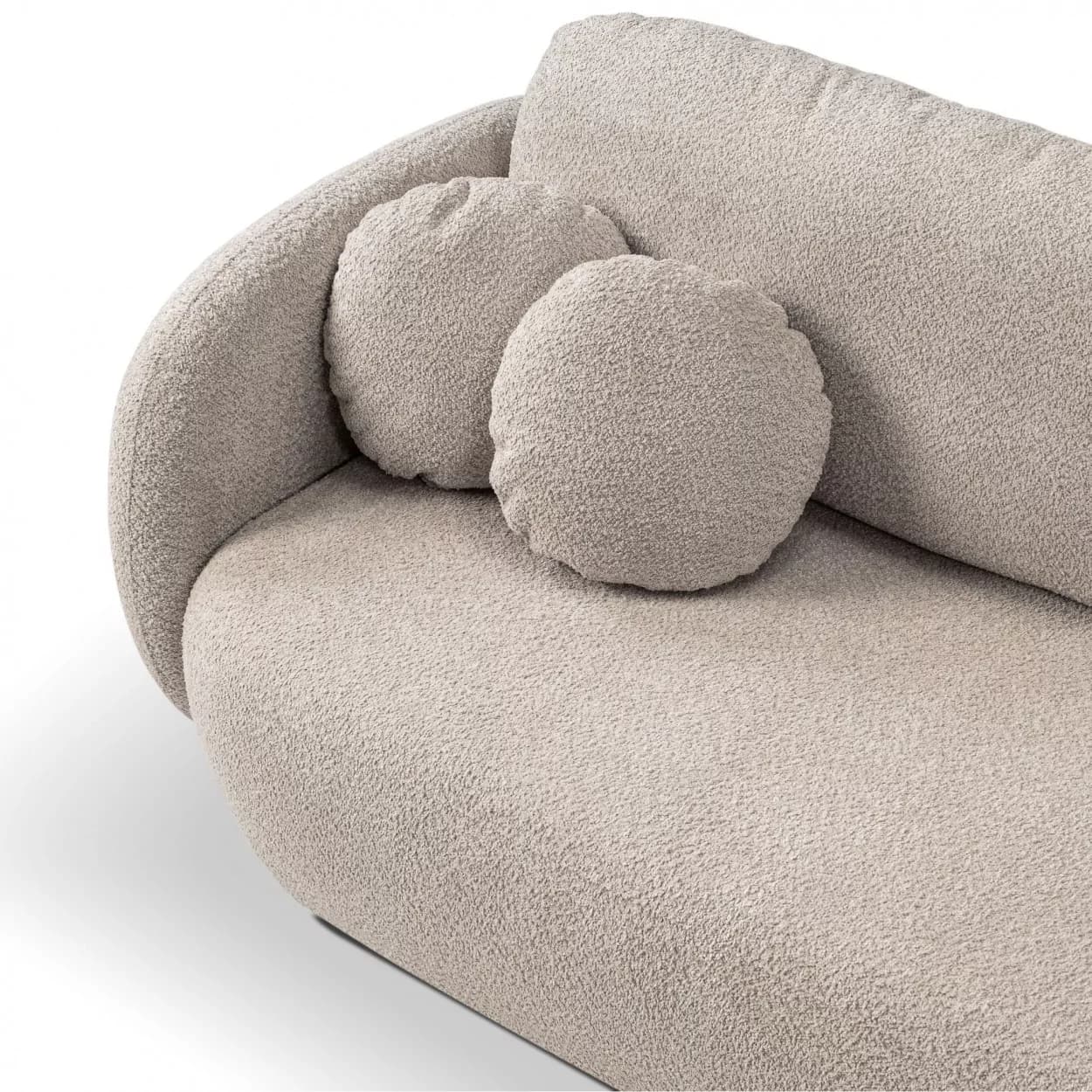 Kanapa VELO to stylowy mebel z tkaniny boucle ABRIAMO, wyposażony w funkcję spania i pojemnik na pościel. Jej obła forma i nowoczesny design sprawiają, że idealnie sprawdzi się w każdym wnętrzu, łącząc wygodę z elegancją.
