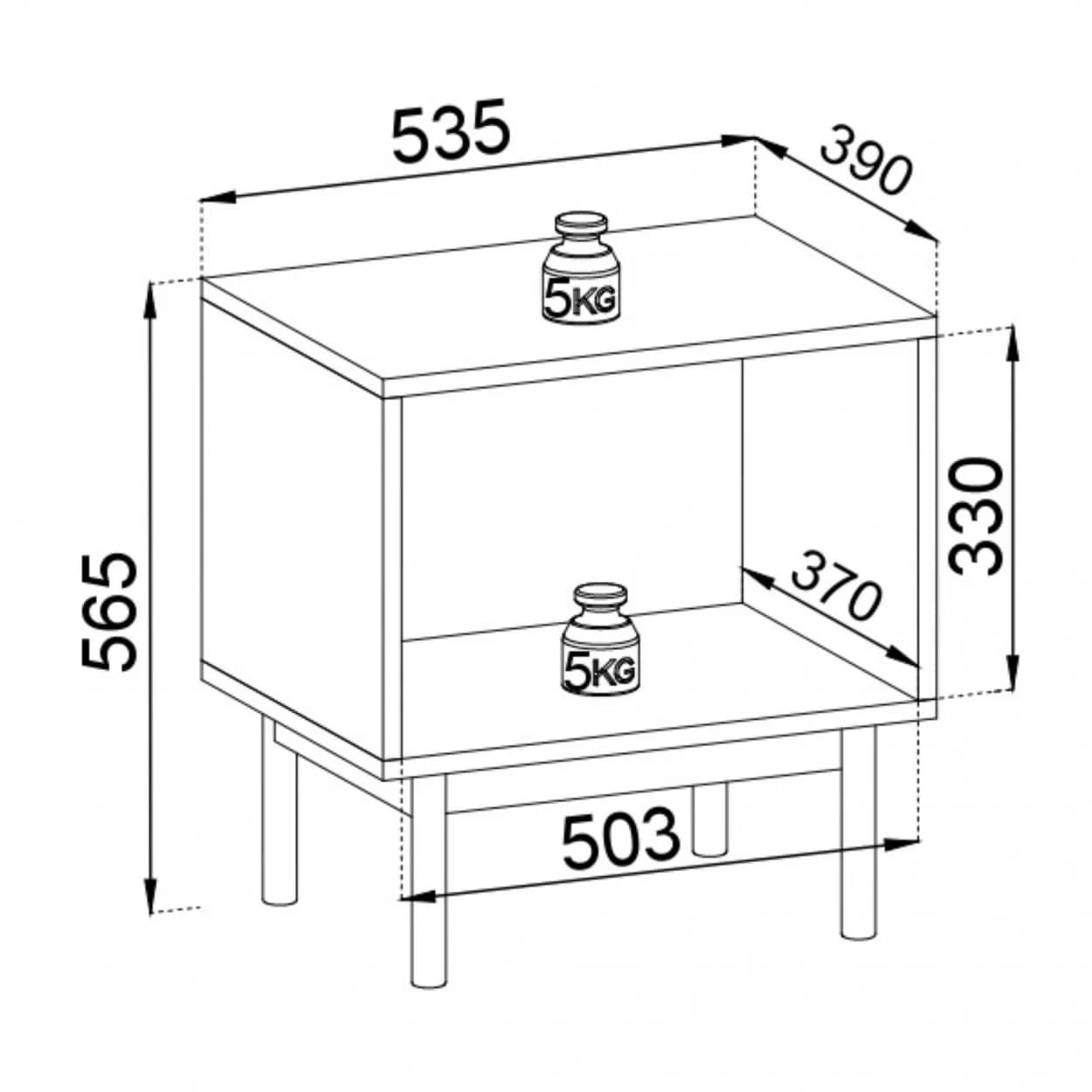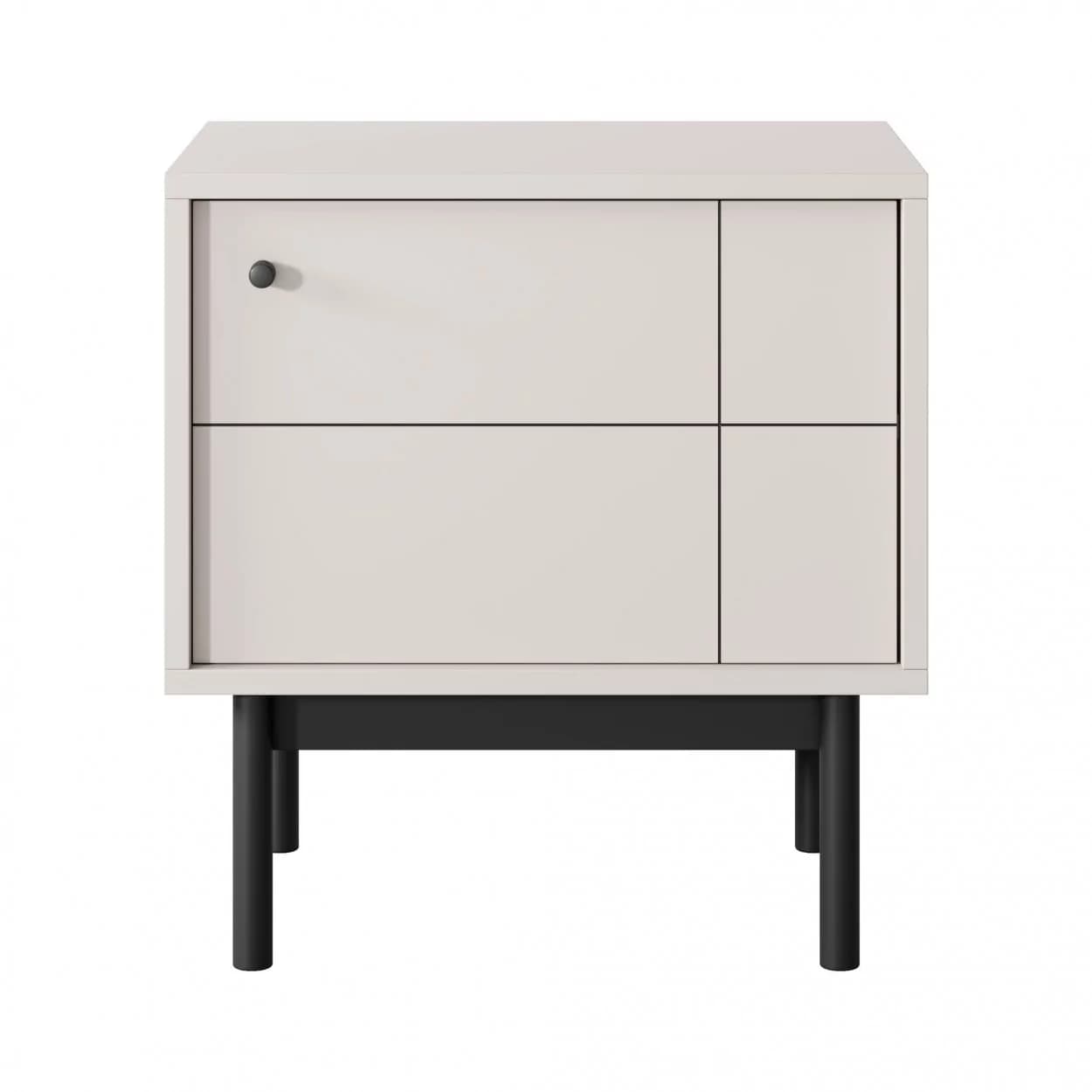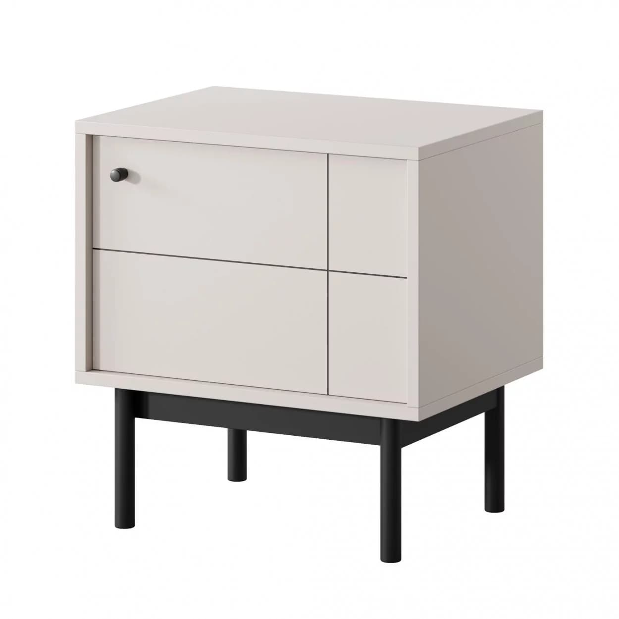 Szafka nocna SCALA w kolorze kaszmiru z drewnianym stelażem, czarnym metalowym uchwytem i dekoracyjnym frezem. Elegancka, stylowa i praktyczna.