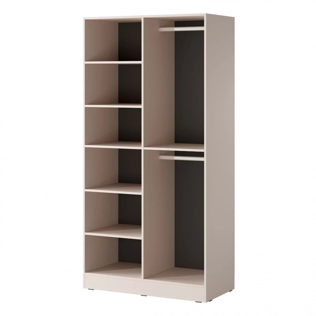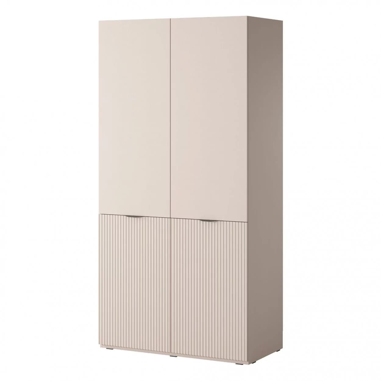 Szafa dwudrzwiowa NOOK w kolorze beżu piaskowego, z czarnymi uchwytami i dekoracyjnym wzorem w lamele. Elegancka i funkcjonalna.