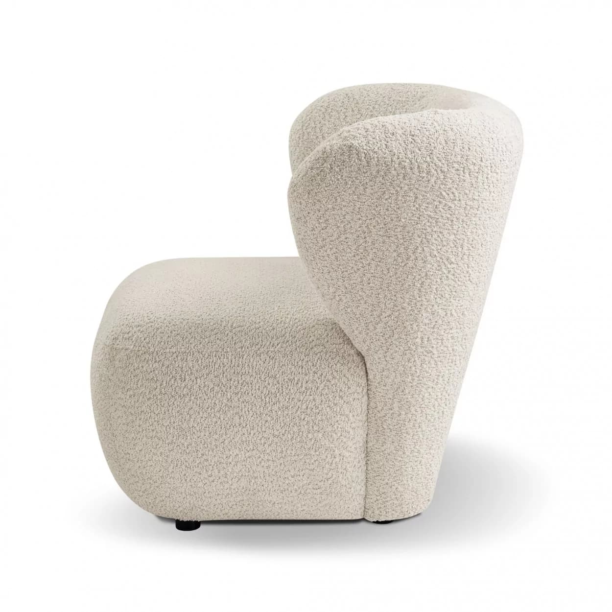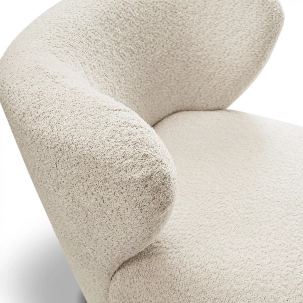 Fotel ALAND w kremowej tkaninie boucle łączy nowoczesny design z wyjątkowym komfortem. Miękkie, obłe kształty i piankowe siedzisko zapewniają wygodę na co dzień. Idealny do każdego salonu!
