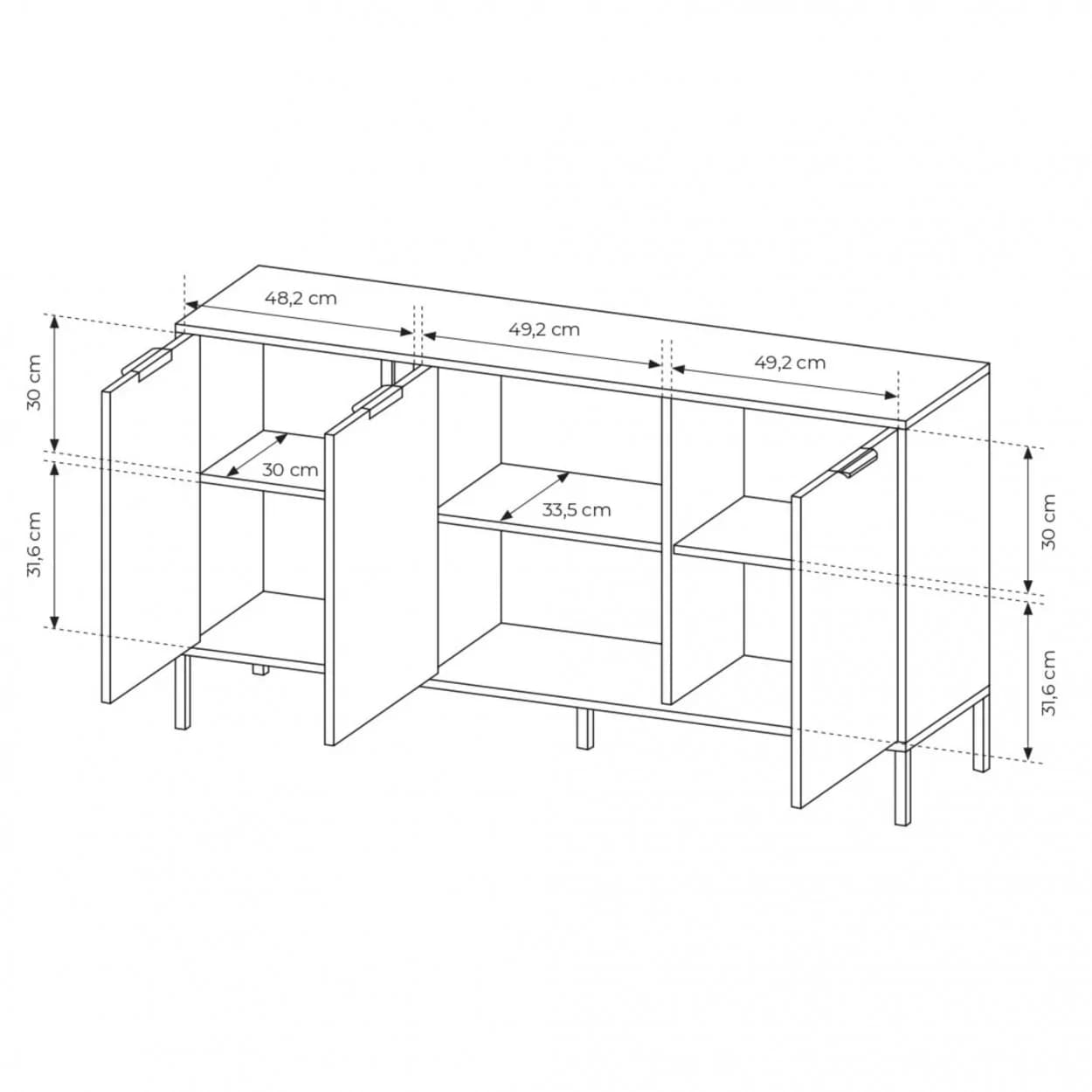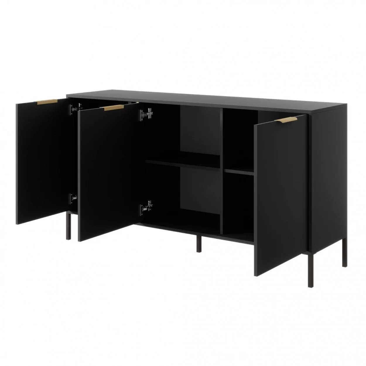 Komoda RISCO trzydrzwiowa w antracytowym kolorze z złotymi uchwytami to elegancki i funkcjonalny mebel. Przestronne szafki oraz solidne metalowe nogi zapewniają wygodę i trwałość. Idealna do nowoczesnych wnętrz.