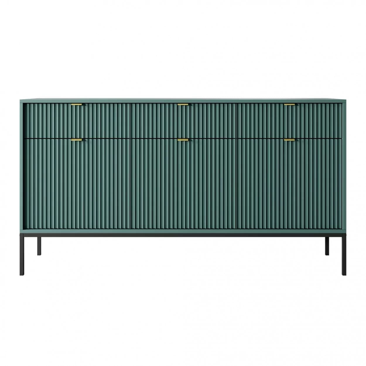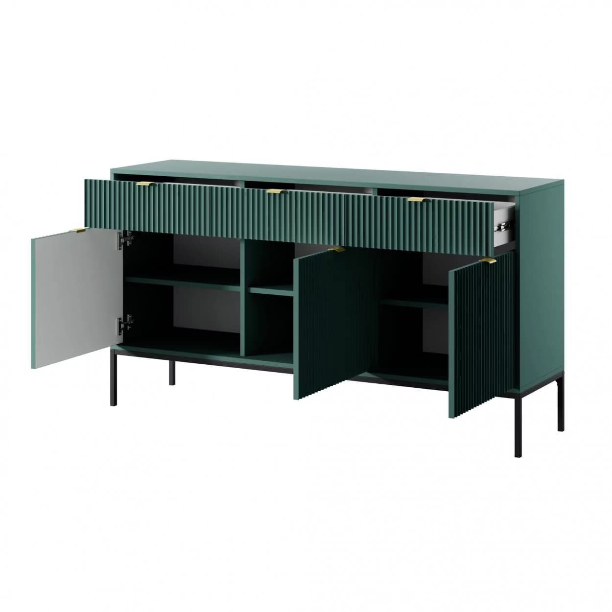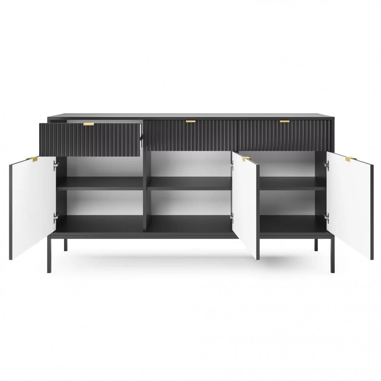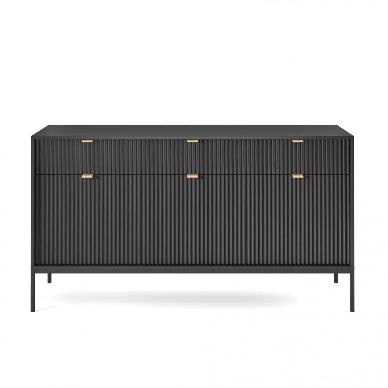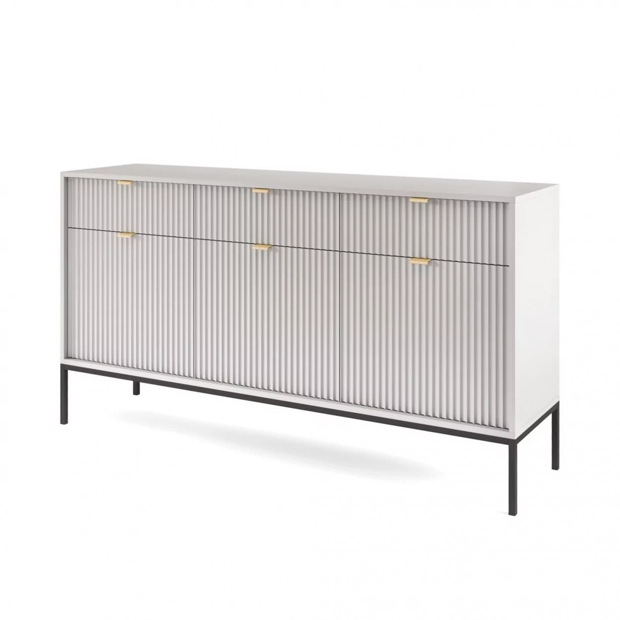 Komoda VESTA dostępna w czterech wariantach kolorystycznych wyróżnia się efektownymi ryflowanymi frontami oraz solidnymi metalowymi nóżkami. Wyposażona w trzy pojemne szuflady i szafki, oferuje przestronność i świetną organizację.