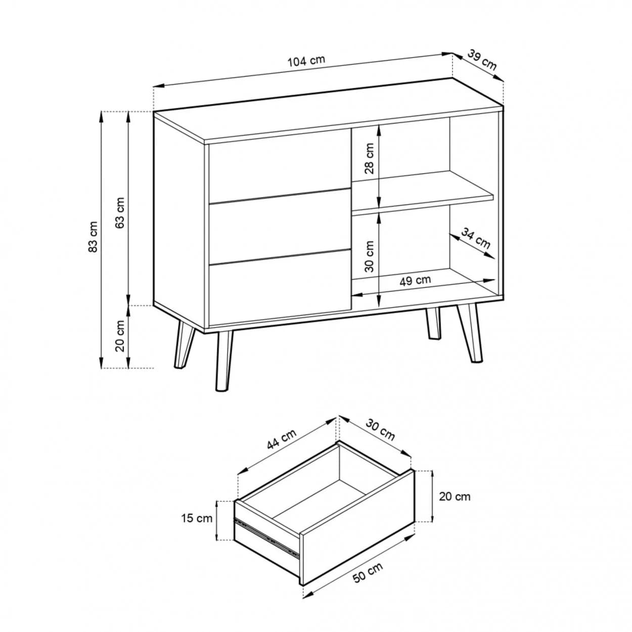 Komoda WILLIAM w kolorze dąb artisan z ryflowanymi frontami, czarnym korpusem i drewnianymi nóżkami. Elegancka i funkcjonalna – z szufladami do wygodnego przechowywania.