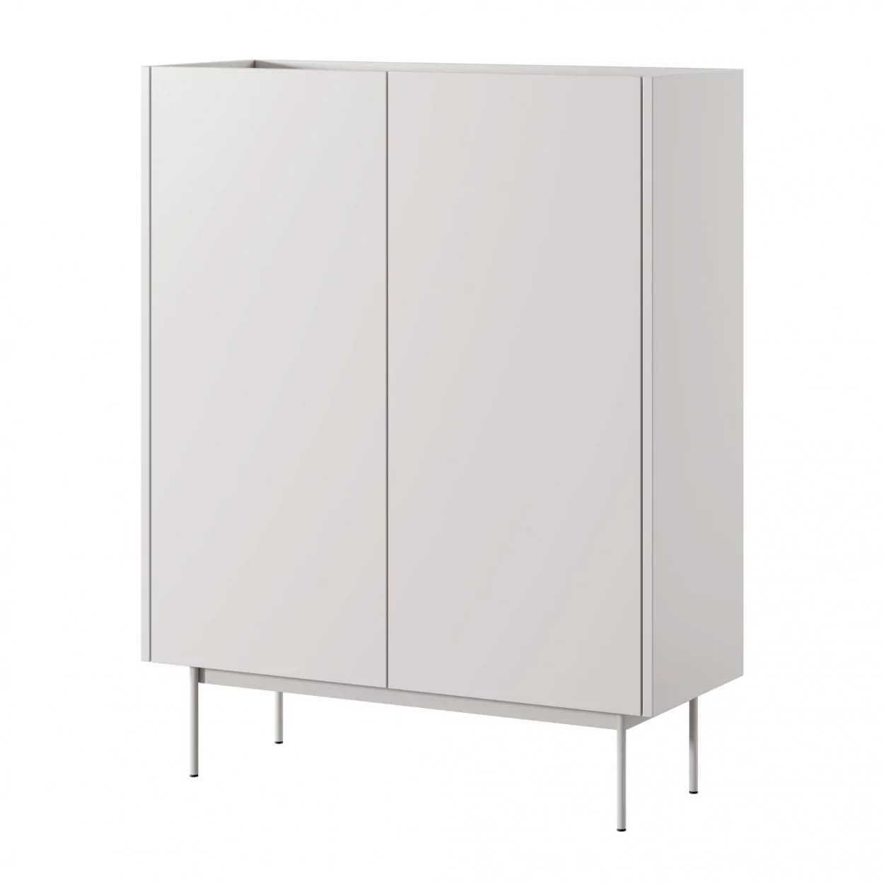 Komoda Lumia dwudrzwiowa w kolorze Kaszmiru z wstawkami Dąb Linea to połączenie nowoczesnego stylu i funkcjonalności, z bezuchwytowym otwieraniem i wpuszczonym blatem.