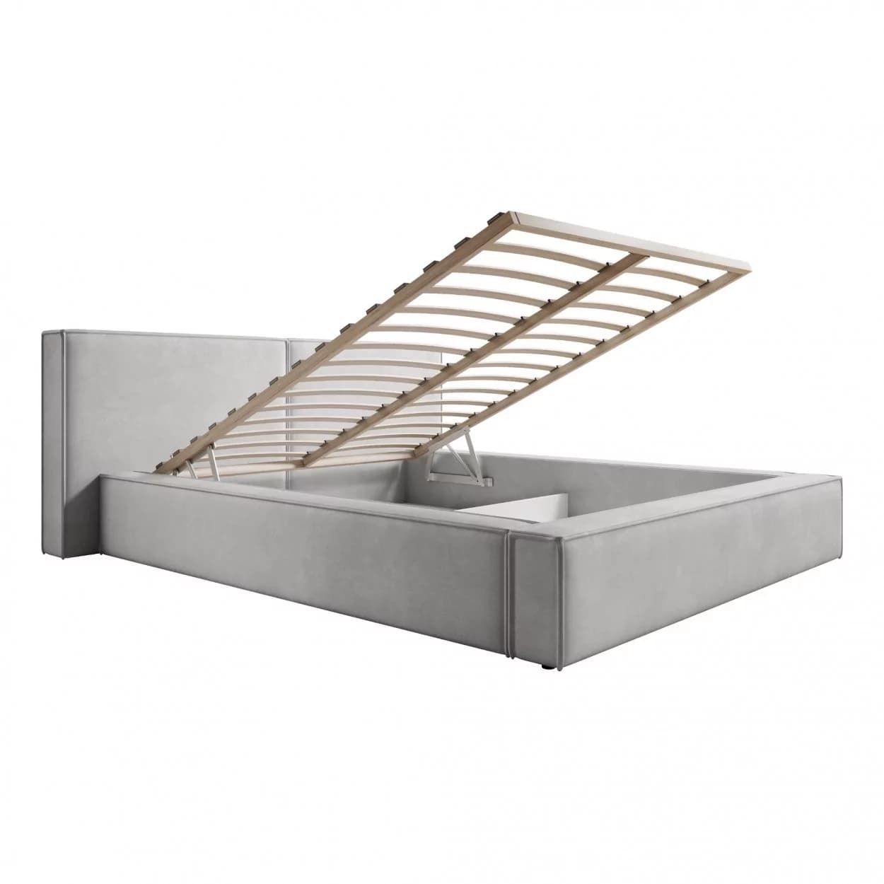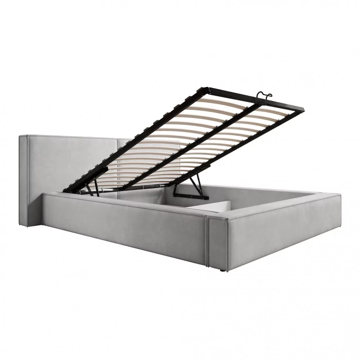 Model wyróżnia się wysoką jakością wykonania oraz dbałością o detale, widoczną m.in. w estetycznych wykończeniach boków i zagłówka. Wbudowany dwukomorowy pojemnik na pościel otwierany za pomocą automatu sprężynowego sprawia, że łóżko jest nie tylko piękne, ale i wyjątkowo funkcjonalne.