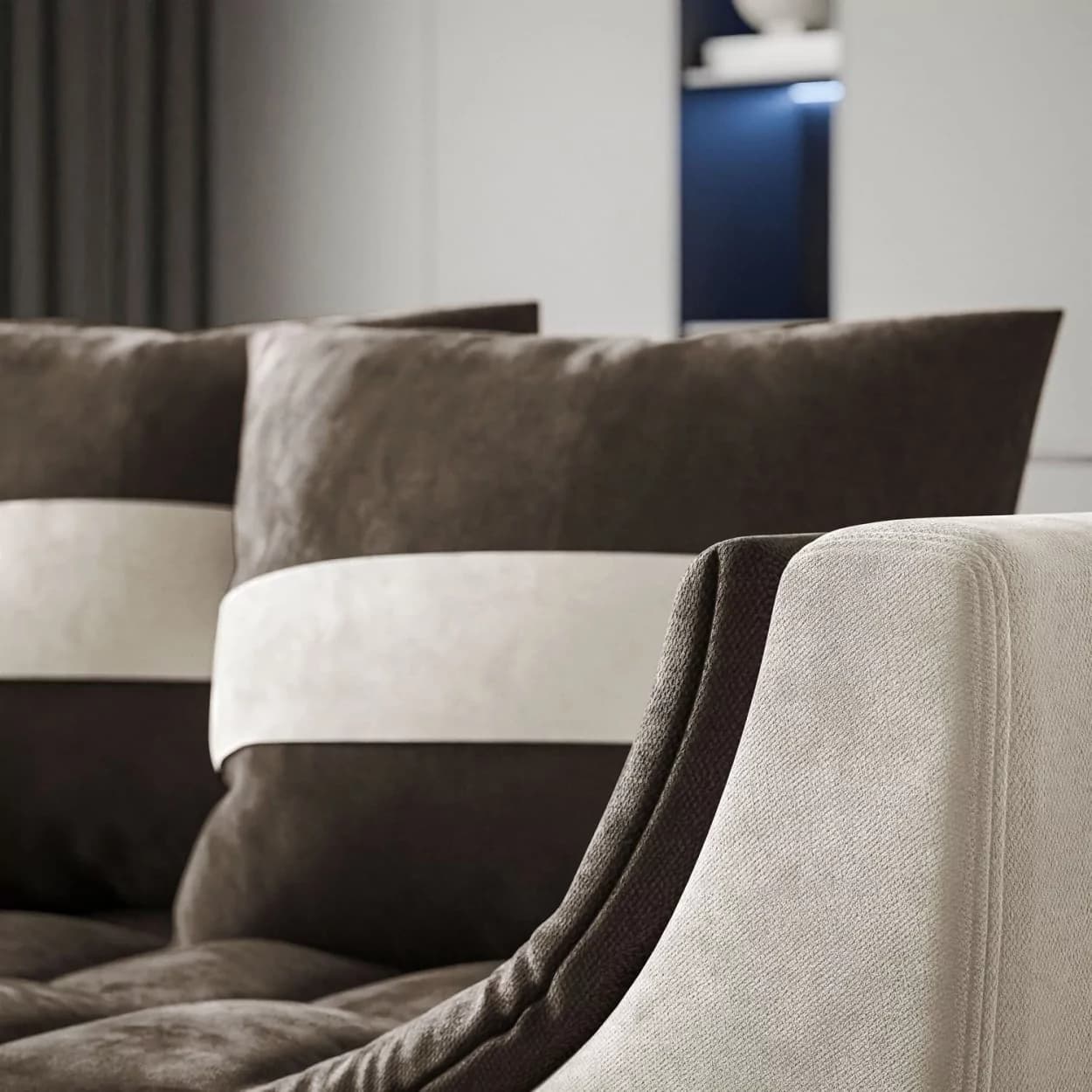 na prezentowanych zdjęciach kanapa jest wykonana w tkaninach: Eureka 2127 + Jasmine 20, Rosario 456 + Jasmine 20, Rosario 451 + Rosario 462.