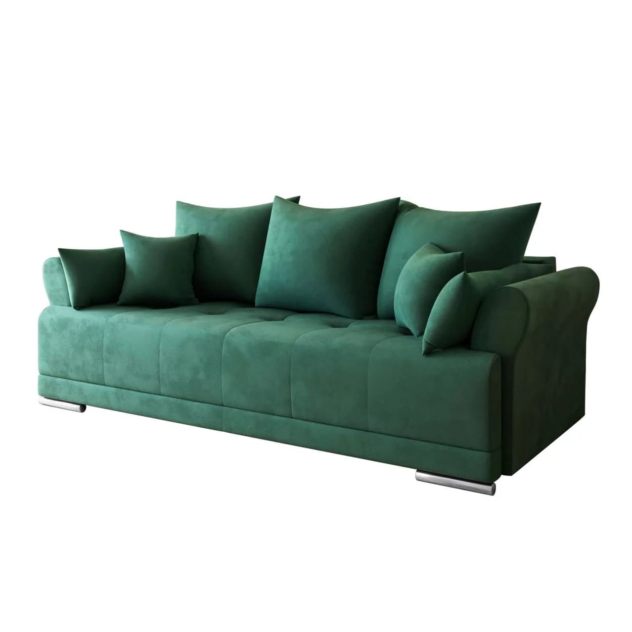 Sofa GRAND to propozycja dla tych, którzy szukają eleganckiego i wygodnego mebla. Wykonana z wysokiej jakości materiałów, oferuje klasyczny design i praktyczne rozwiązania. Jej wszechstronność sprawia, że doskonale wpisuje się w różne wnętrza. Komfort użytkowania, możliwość spania oraz funkcjonalny schowek na pościel to cechy, które wyróżniają ten mebel. Oparcie wypełnione pianką oraz siedzisko z kombinacji sprężyn bonellowych i pianki dostarczają przyjemnego doświadczenia. Chromowane nóżki dodają delikatnego wykończenia, a solidna konstrukcja z drewniana zapewnia trwałość. To sofa, która jest estetyczna oraz funkcjonalna równocześnie, pozostawiając swobodę w personalizacji wnętrza.