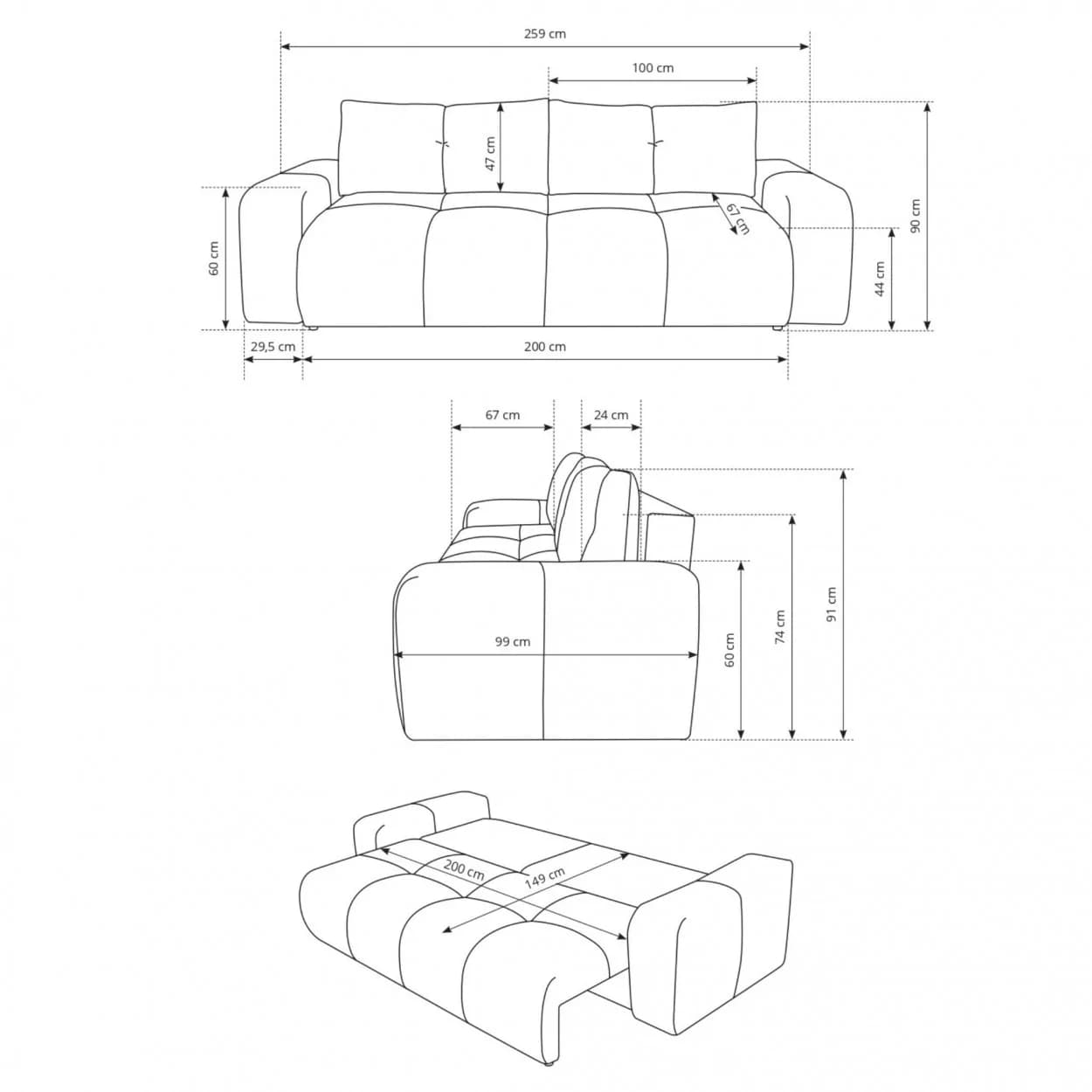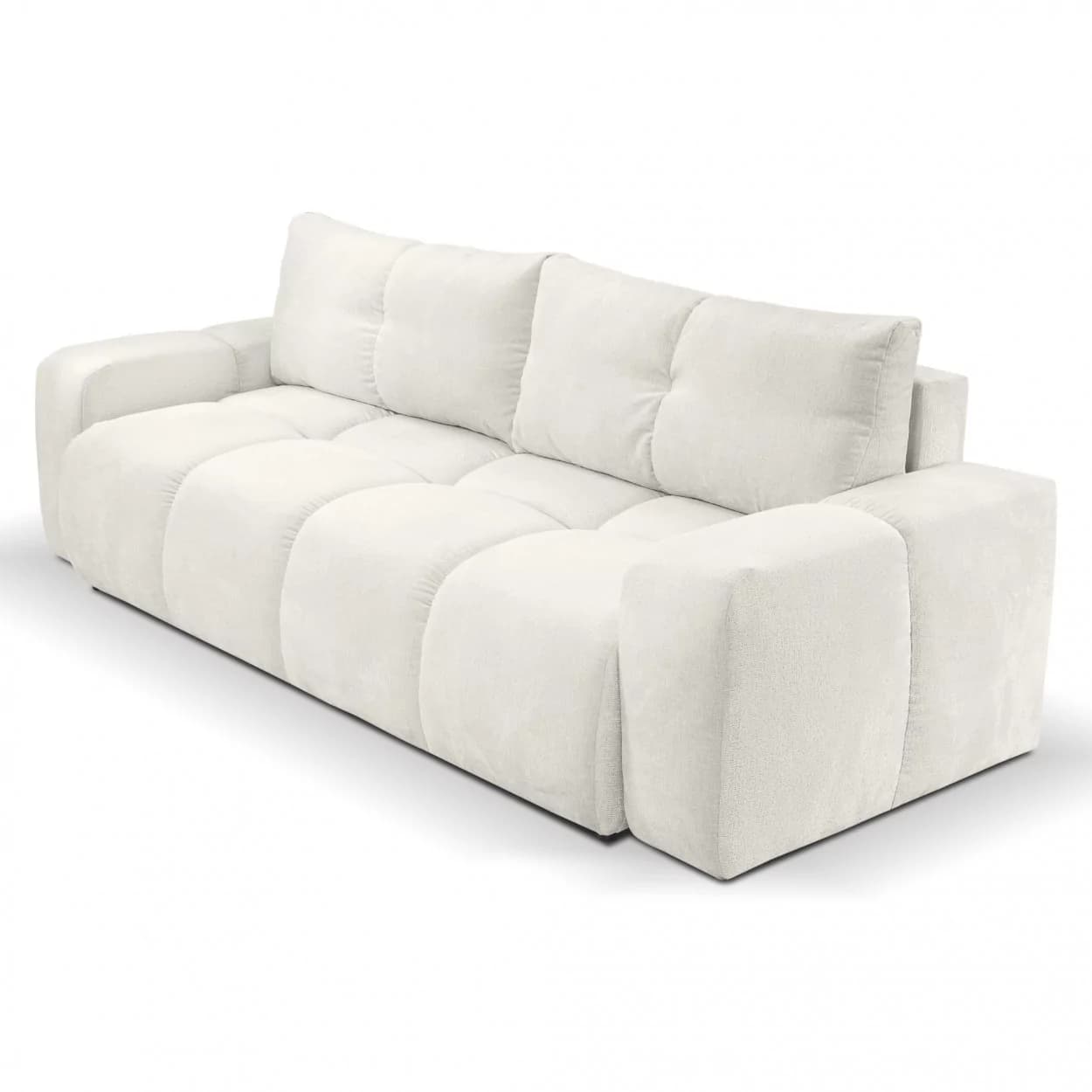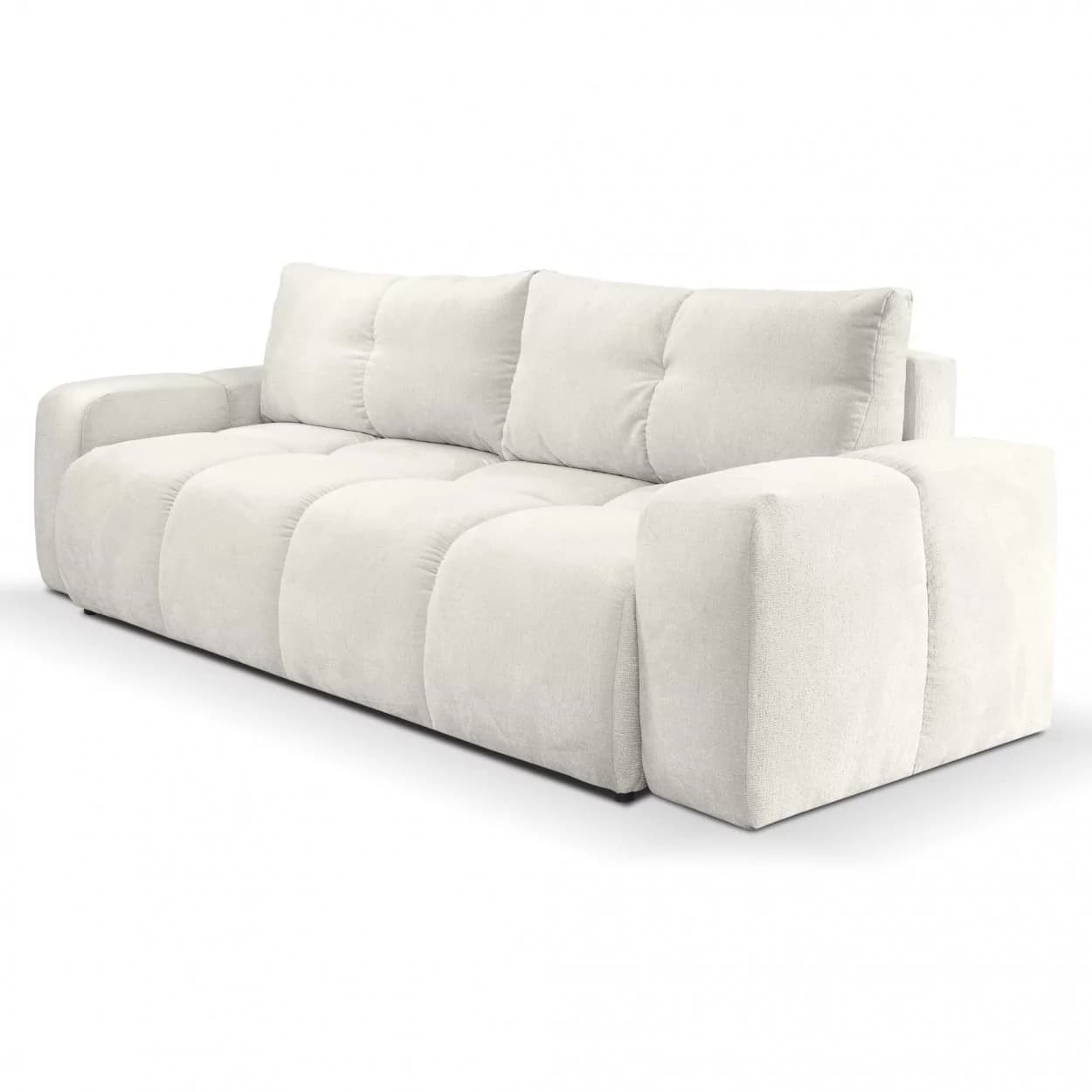Kanapa SELLA to połączenie eleganckiego stylu glamour i praktycznych funkcji. Funkcja spania, pojemnik na pościel oraz obłe kształty i dekoracyjne przeszycia czynią ją zarówno komfortową, jak i efektowną ozdobą wnętrza.