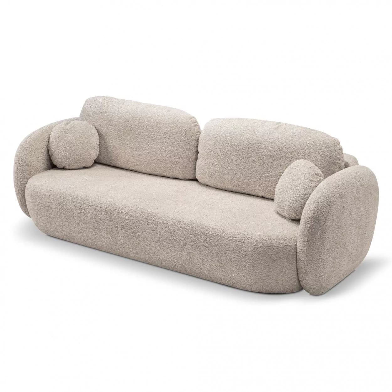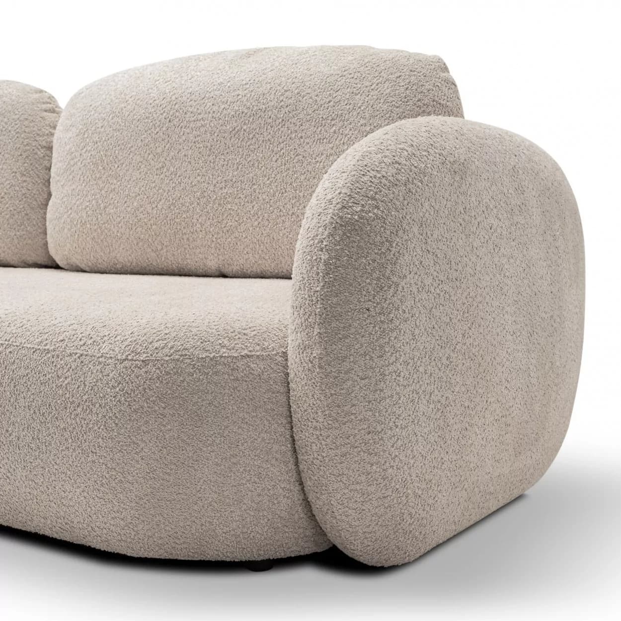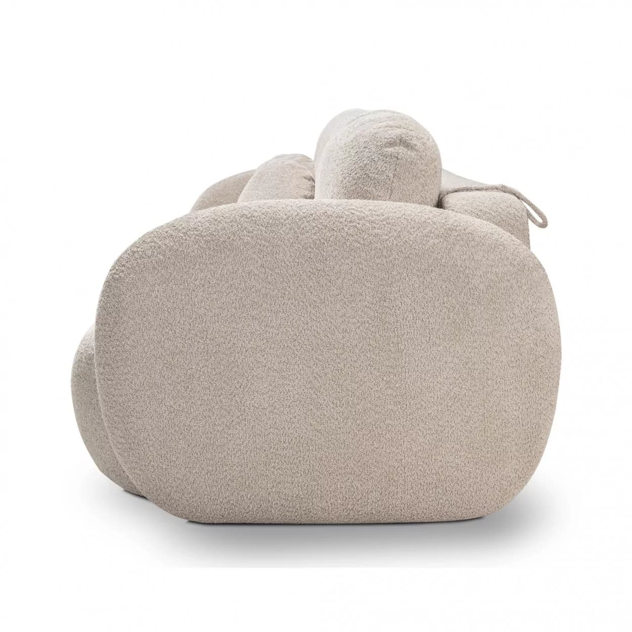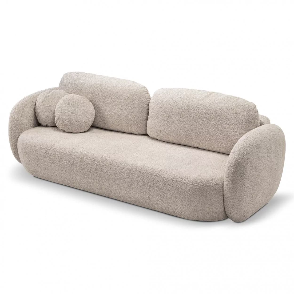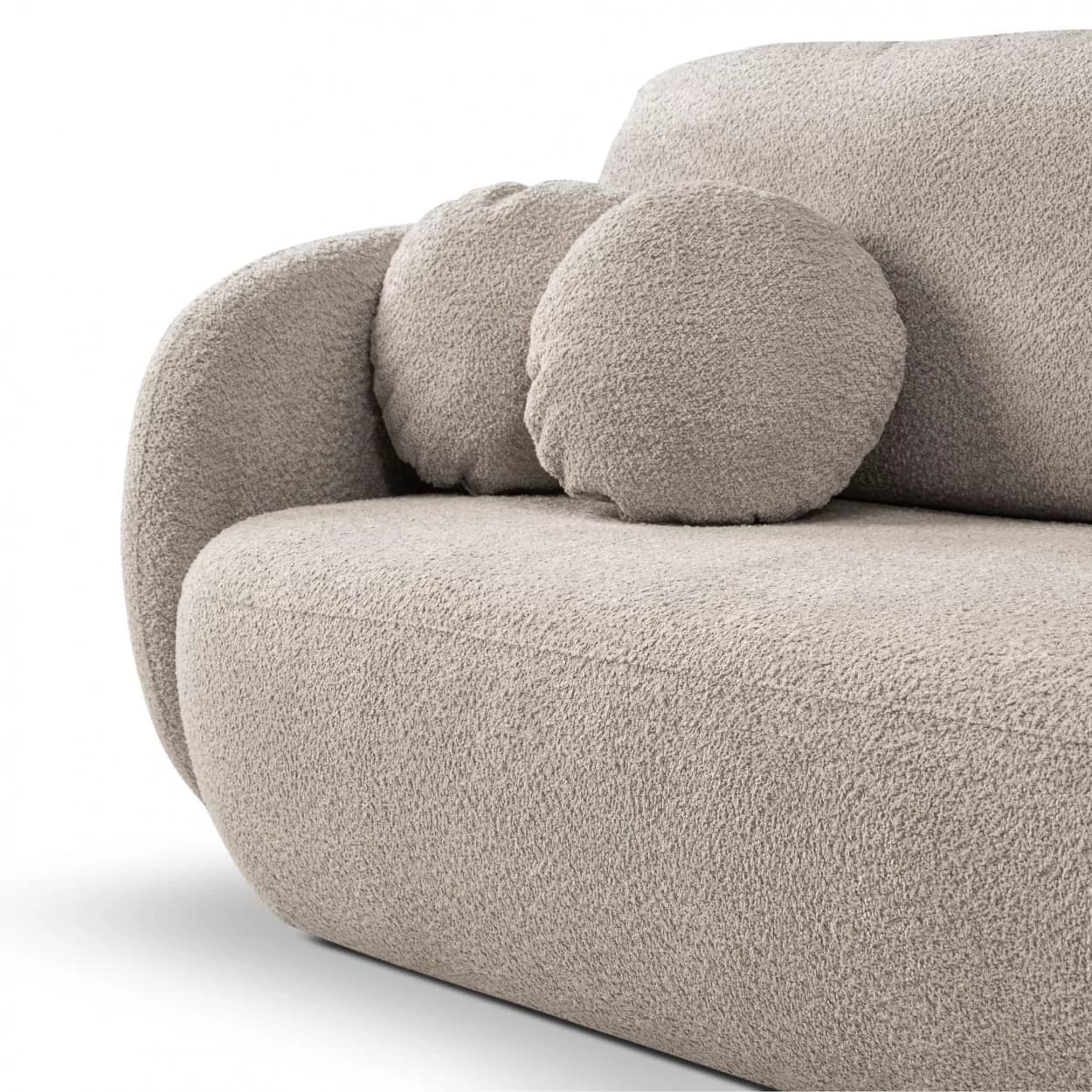 Kanapa VELO to stylowy mebel z tkaniny boucle ABRIAMO, wyposażony w funkcję spania i pojemnik na pościel. Jej obła forma i nowoczesny design sprawiają, że idealnie sprawdzi się w każdym wnętrzu, łącząc wygodę z elegancją.