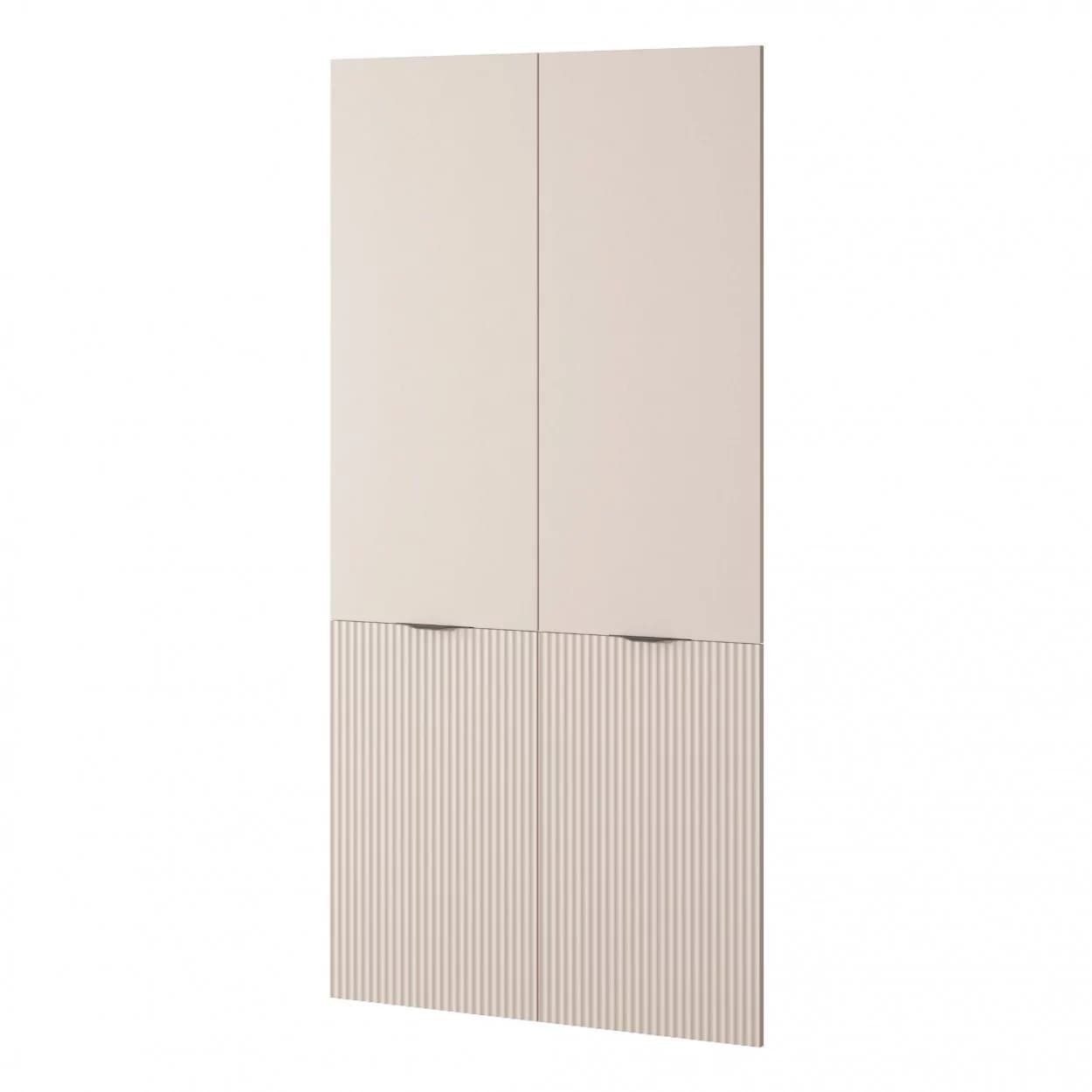 Szafa dwudrzwiowa NOOK w kolorze beżu piaskowego, z czarnymi uchwytami i dekoracyjnym wzorem w lamele. Elegancka i funkcjonalna.