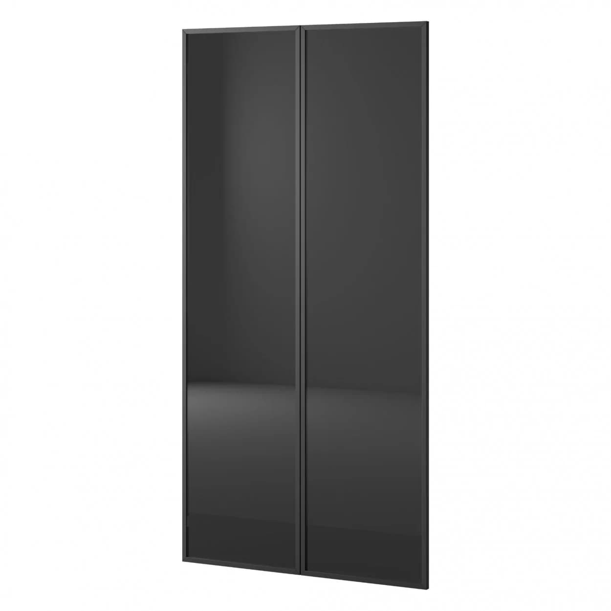Szafa dwudrzwiowa NOOK w eleganckim czarnym kolorze z luksusowym frontem z przyciemnianego szkła Antisol. Stylowa i funkcjonalna.